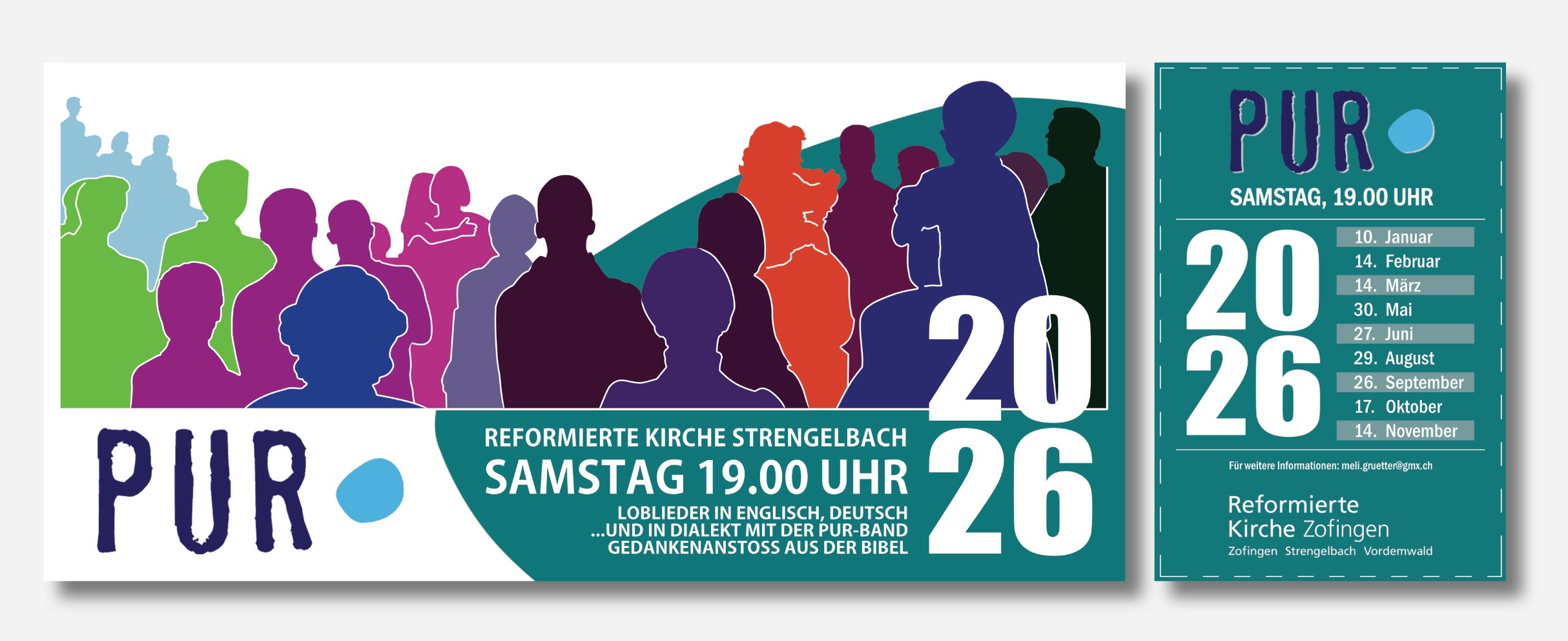 PUR-GottesdienstLobpreis-Gottesdienst am Samstag-Abend in der Reformierten Kirche Strengelbach. ![]()